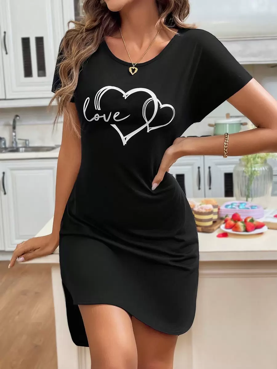 SHEIN LUNE Women Valentine's Day Romantic Heart & Letter Print Comfortable Wrap Dress With Side Slit