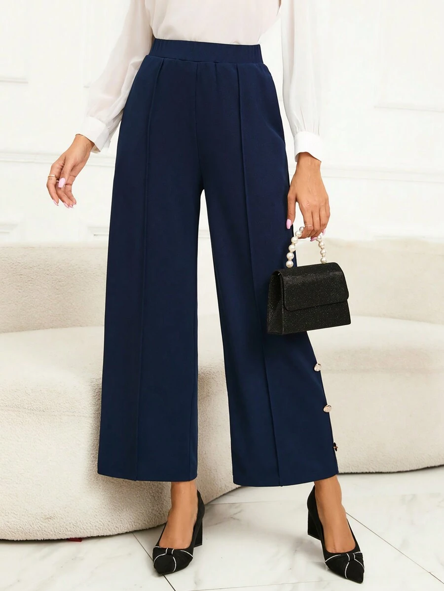 EMERY ROSE Women'S Side Button Decor Wide Leg Pants