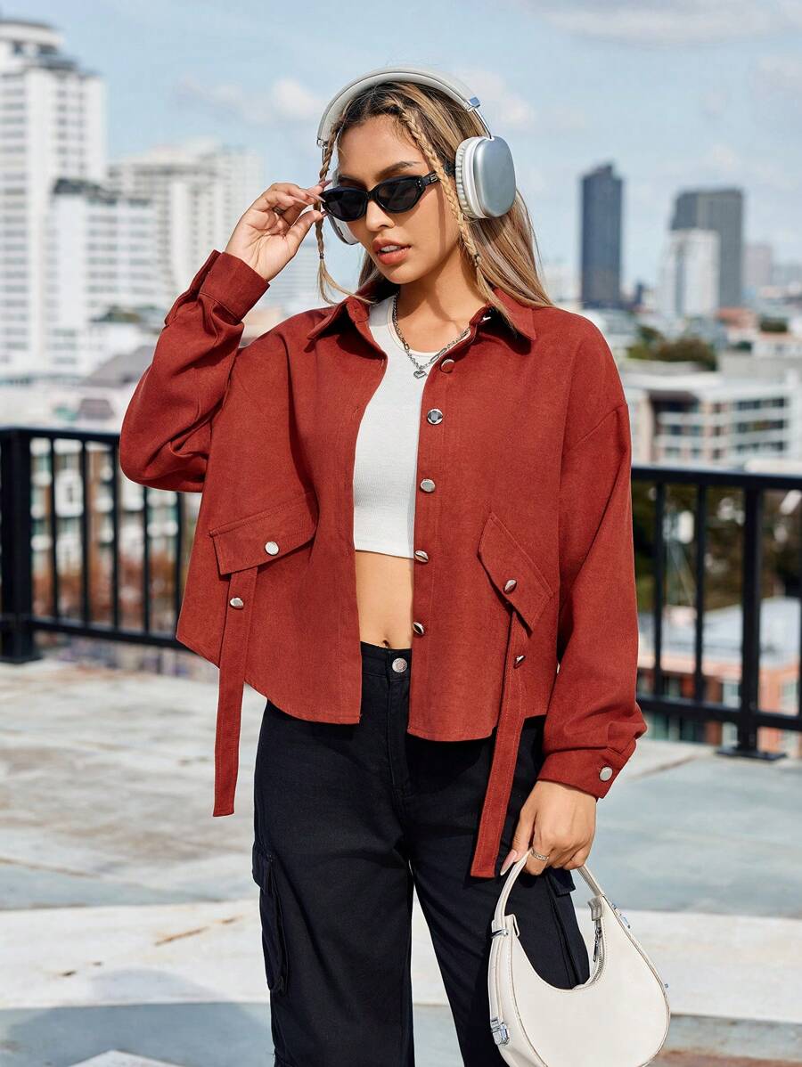 SHEIN Coolane Women'S Single Breasted Drop Shoulder Long Sleeve Coat