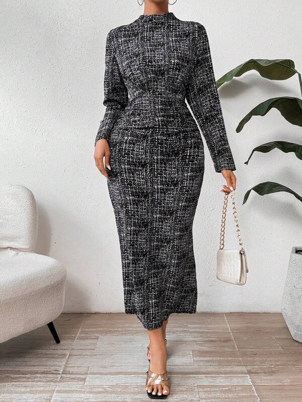 SHEIN Privé Women'S Slim Fit Plaid Stand Collar Dress
