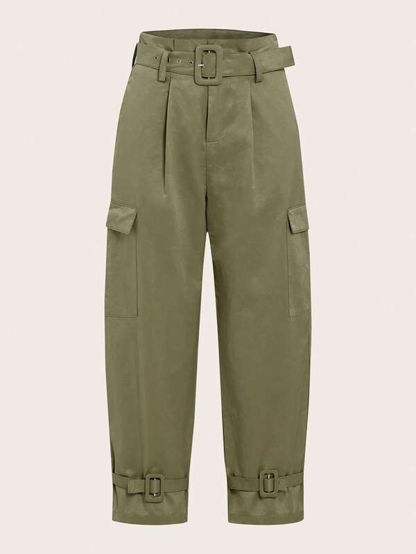 Women'S Solid Color Belted Cargo Trousers
