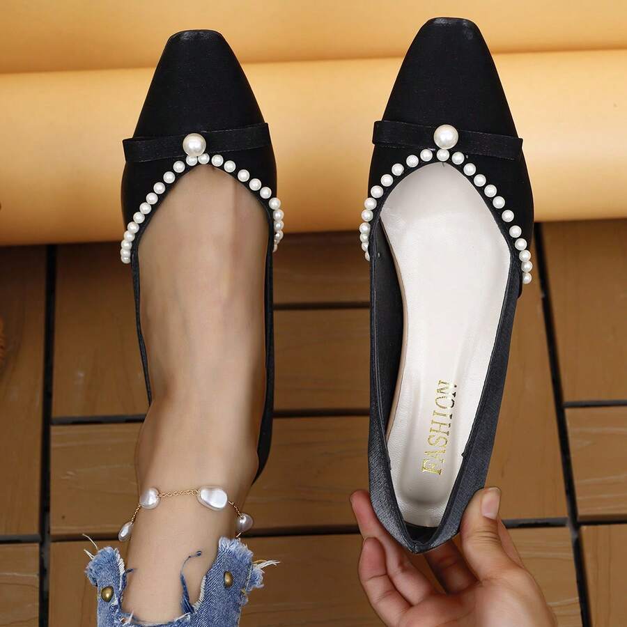 Women's Solid Color High Heels With White Pearl Embellishment, Elegant And Graceful