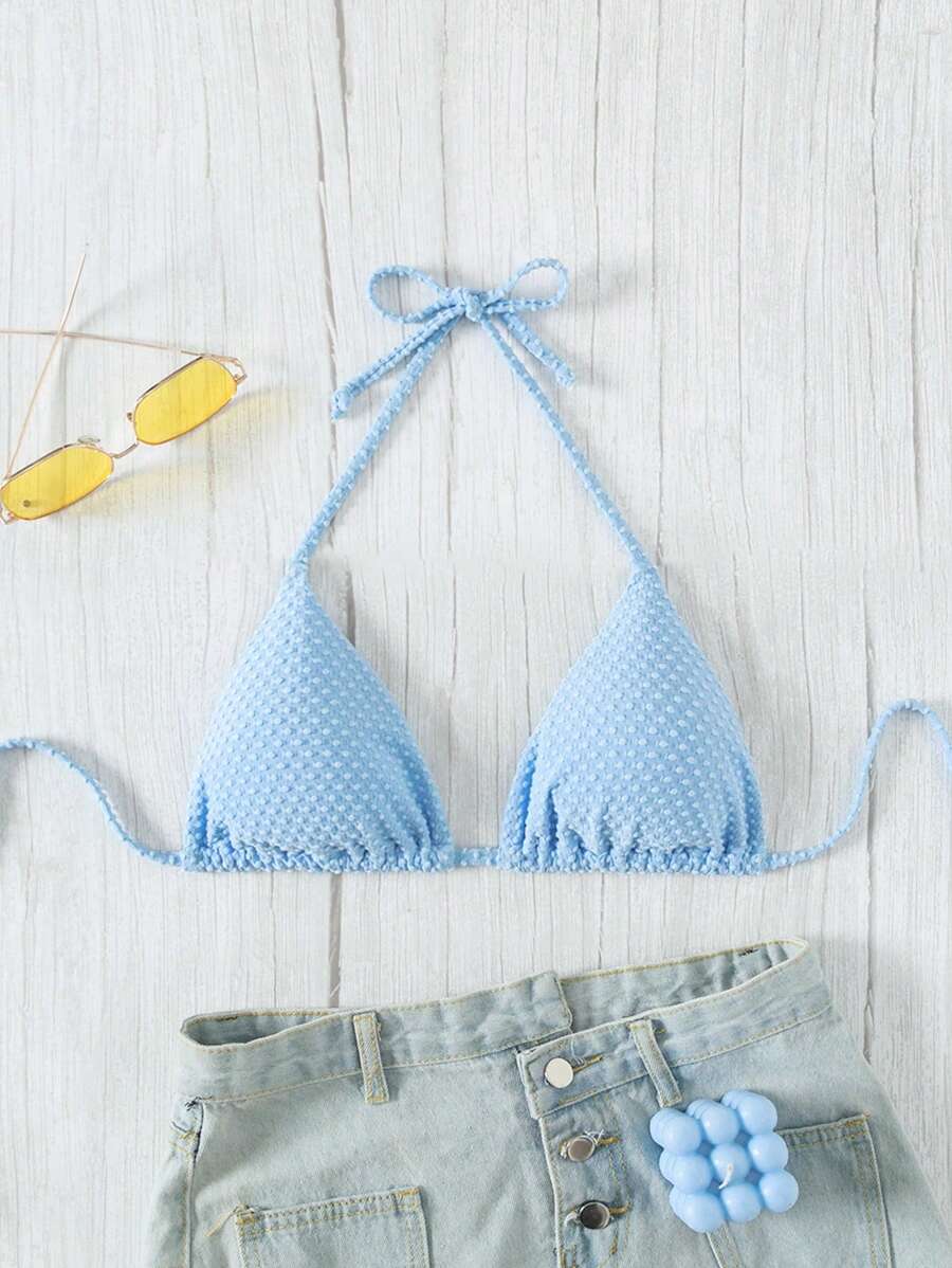 SHEIN Swim Mod Women's Solid Color Jacquard Halter Swimsuit Top