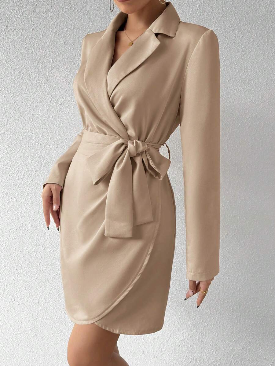 SHEIN Privé Women'S Solid Color Lapel Wrap Dress