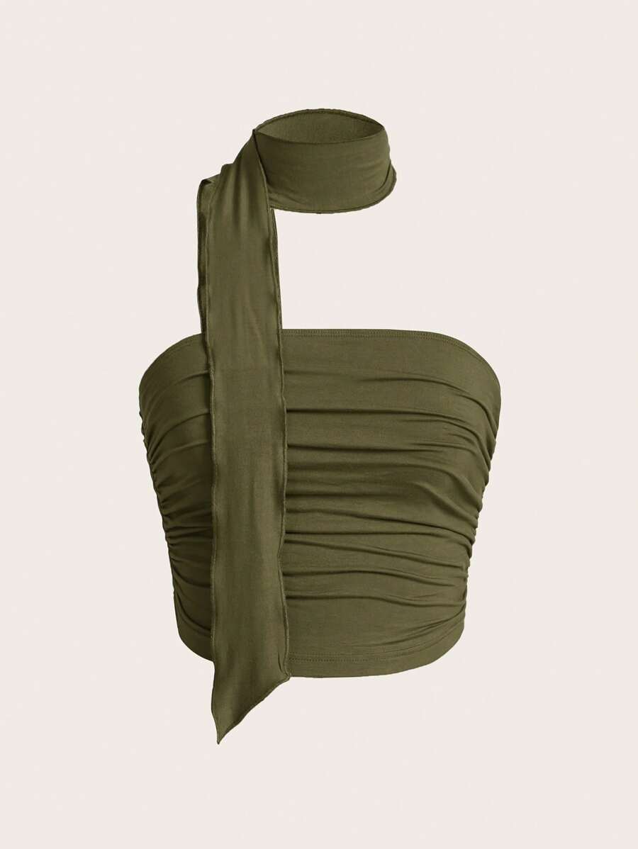 SHEIN Qutie Women's Solid Color Pleated Strapless Top