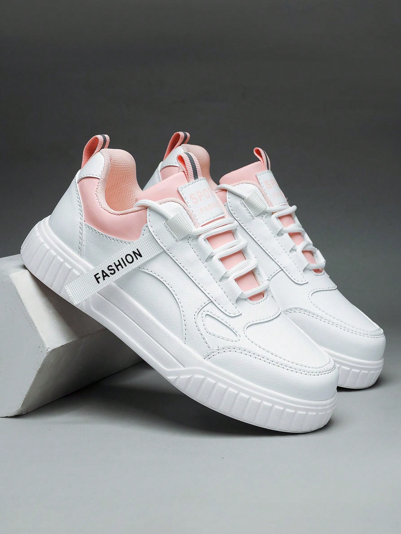 Women'S Sport Shoes With Letter Patchwork, Lace-Up Hiking Shoes For Outdoor Activities, Fashionable And Trendy Flat Skate Shoes