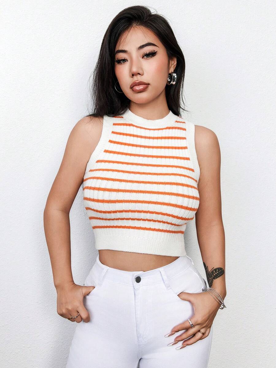 SHEIN SXY Women'S Striped Sleeveless Crop Knit Top