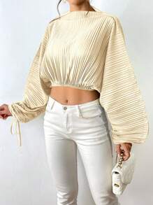 SHEIN Essnce Women'S Textured Drawstring Batwing Sleeve Shirt