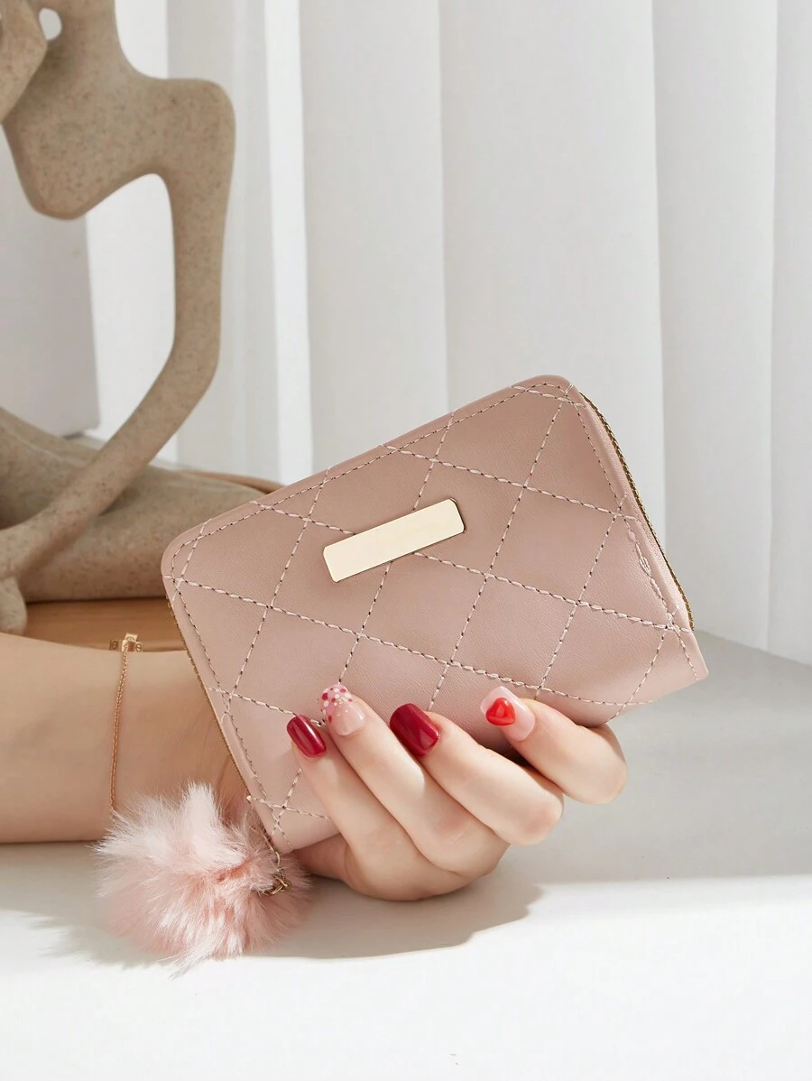 Women's Thread Stitching Metallic Decor Short Wallet Portable,Money,Cash White-Collar Workers,For Female College,Work, Business, Commute,Office,For Anniversary,For Lover,For Birthday Gift,On Valentine Day Gift, Gift