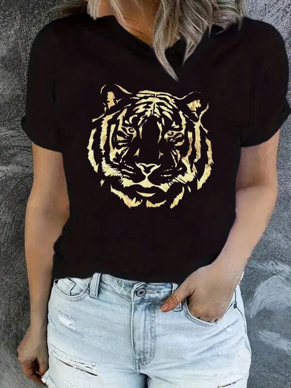 SHEIN LUNE Women'S Tiger Printed Short Sleeve T-Shirt