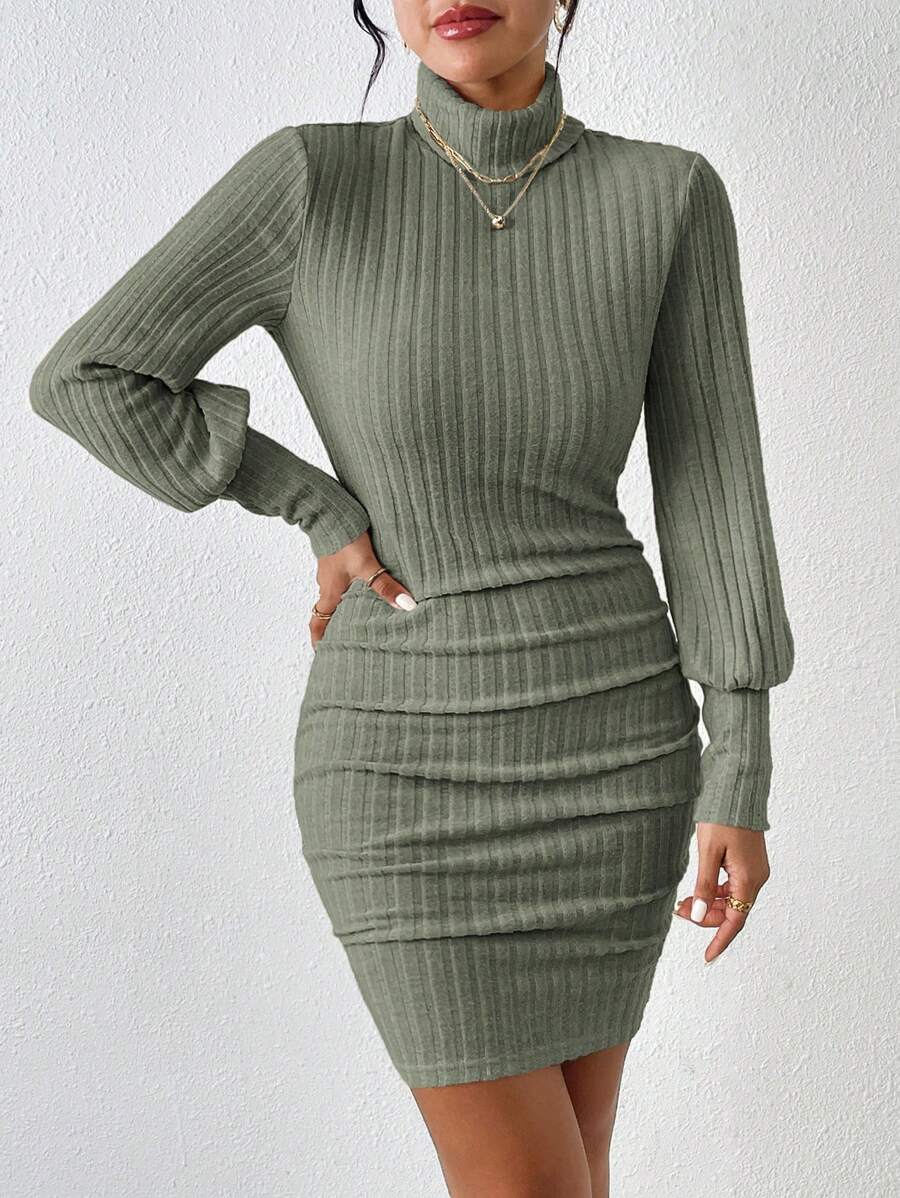 SHEIN Frenchy Women'S Turtleneck Ribbed Bodycon Dress