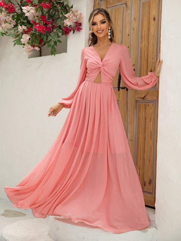 Joyfunear Women'S Twist Knot Halter Neck Hollow Out Waist Side Split Maxi Dress