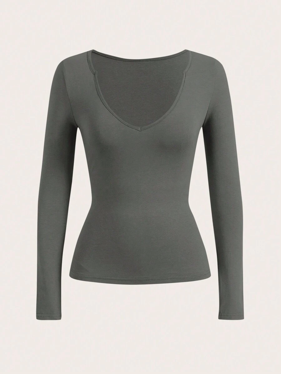 SHEIN BASICS Women's V-Neck Long Sleeve T-Shirt