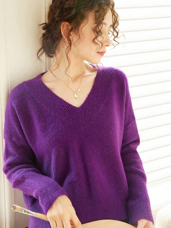Knit Mix Women'S V-Neck Loose Pullover Sweater