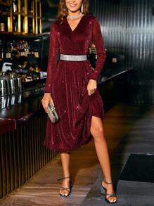 SHEIN Clasi Women'S Wrap Neck Long Sleeve Dress Without Waist Belt