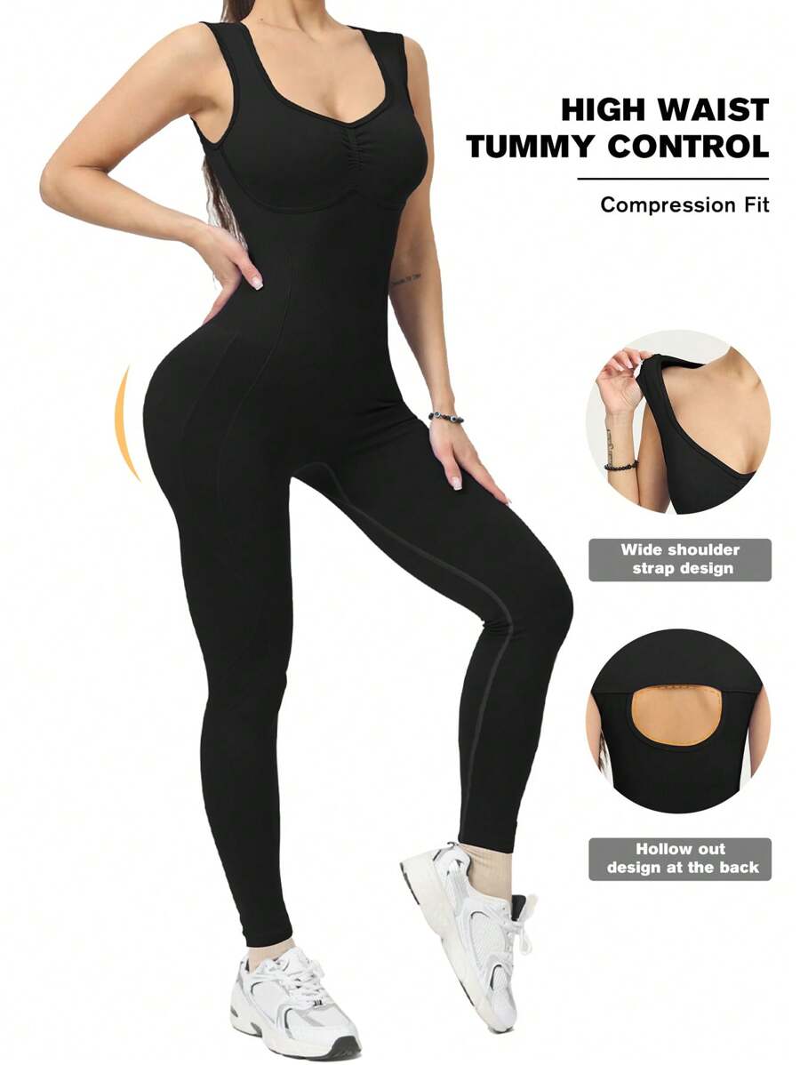 Yefecy Women's Control Belly High Stretch Hollow Out Back Yoga Jumpsuit
