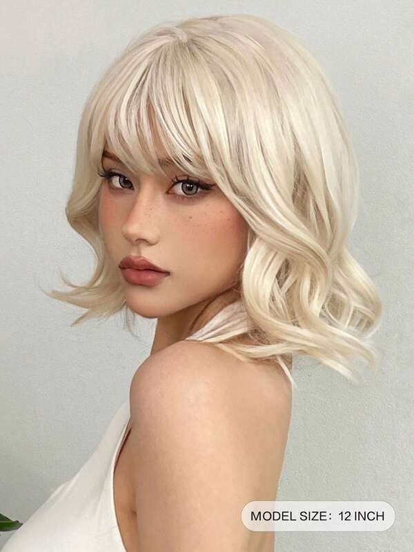 Women's 14inch Short Red Wavy Synthetic Wig - Great For Party, Lolita Cosplay Or Halloween Costume, Shoulder Length Curly Wavy Wig