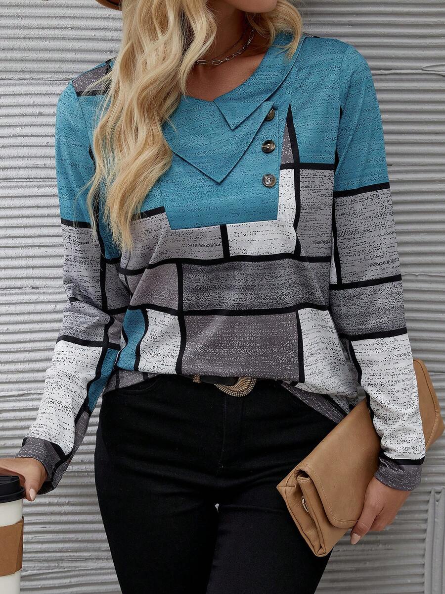 Women's Asymmetrical Collar & Button Detail Colorblock T-shirt