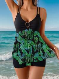 Swim Vcay Women's Ditsy Floral Spaghetti Strap Camisole And Bikini Set, Romantic Beach Vacation, 2026 Spring/Summer Women's Fashion New Arrivals: New Year's Styles, Valentine's Day Styles, Back-To-School Styles, Travel Styles, Suitable For Vacations, Beaches, Afternoon Tea Picnics, Parties, Daily Work, Casual Wear, Outdoor Sports, And Stylish Outfits. High Waist Bikini Set High Waist Swimsuit Set Boho Bikini Set Beach 2 Piece Set Vacation Two Piece Set Women #1 Bestseller