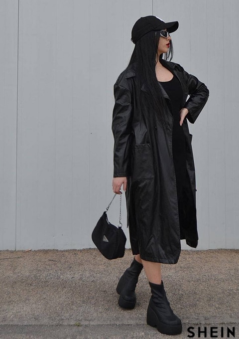 ROMWE Goth Women's Black Punk Military/combat Boots With Elastic Band