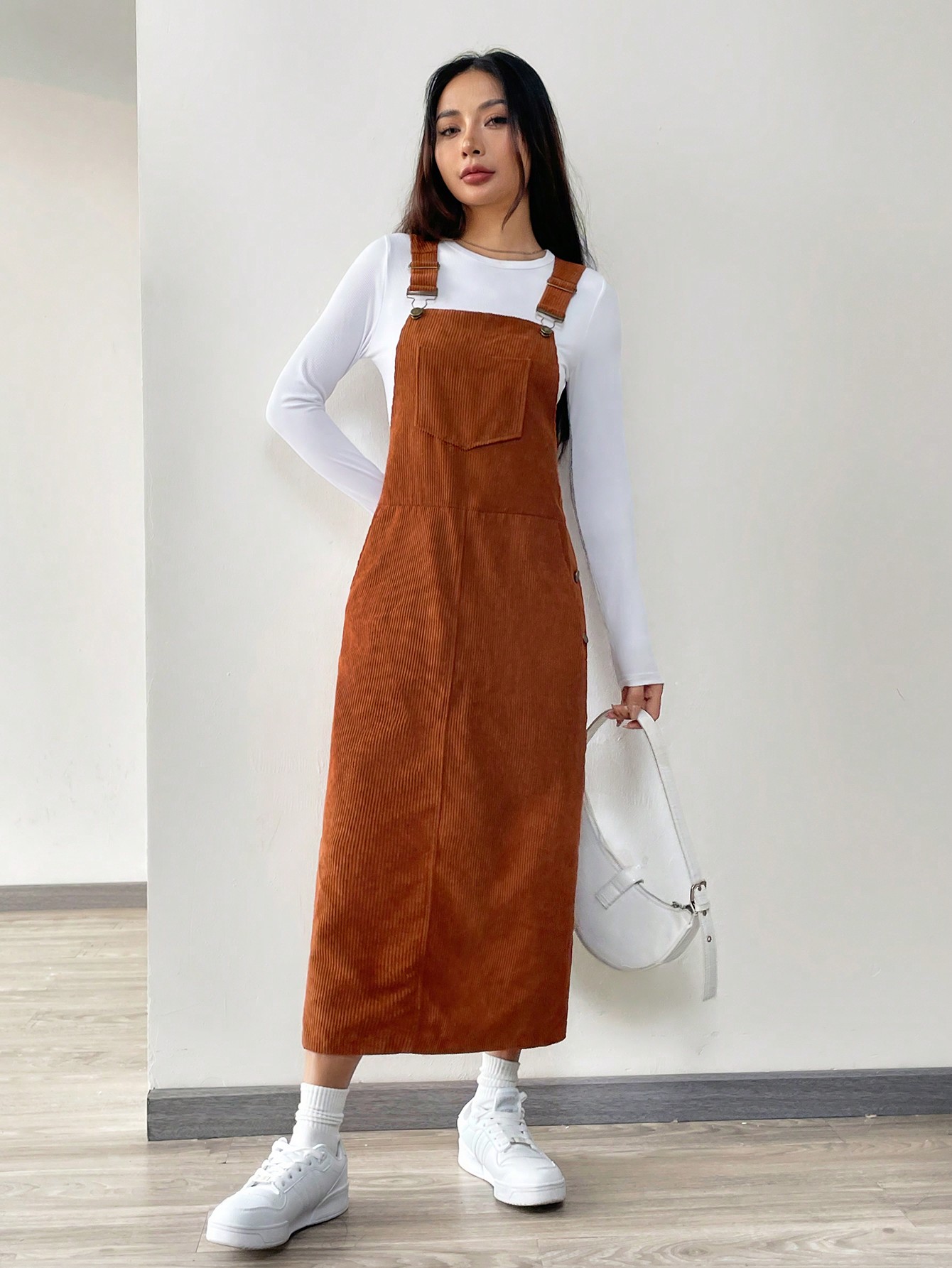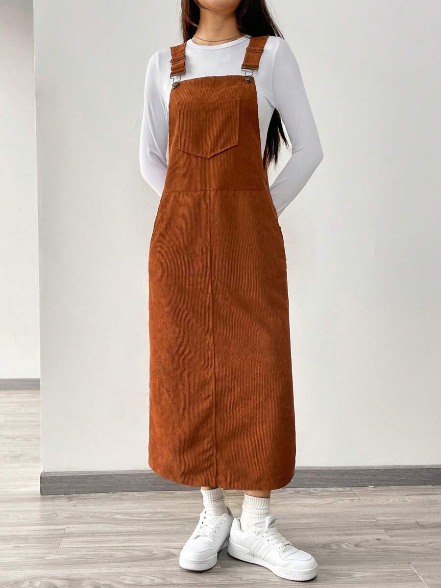 SHEIN EZwear Women's Brown Woven Overall Dress