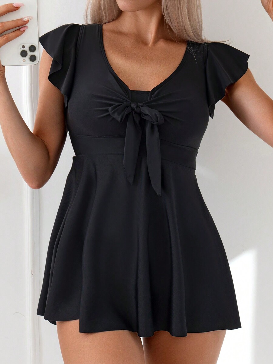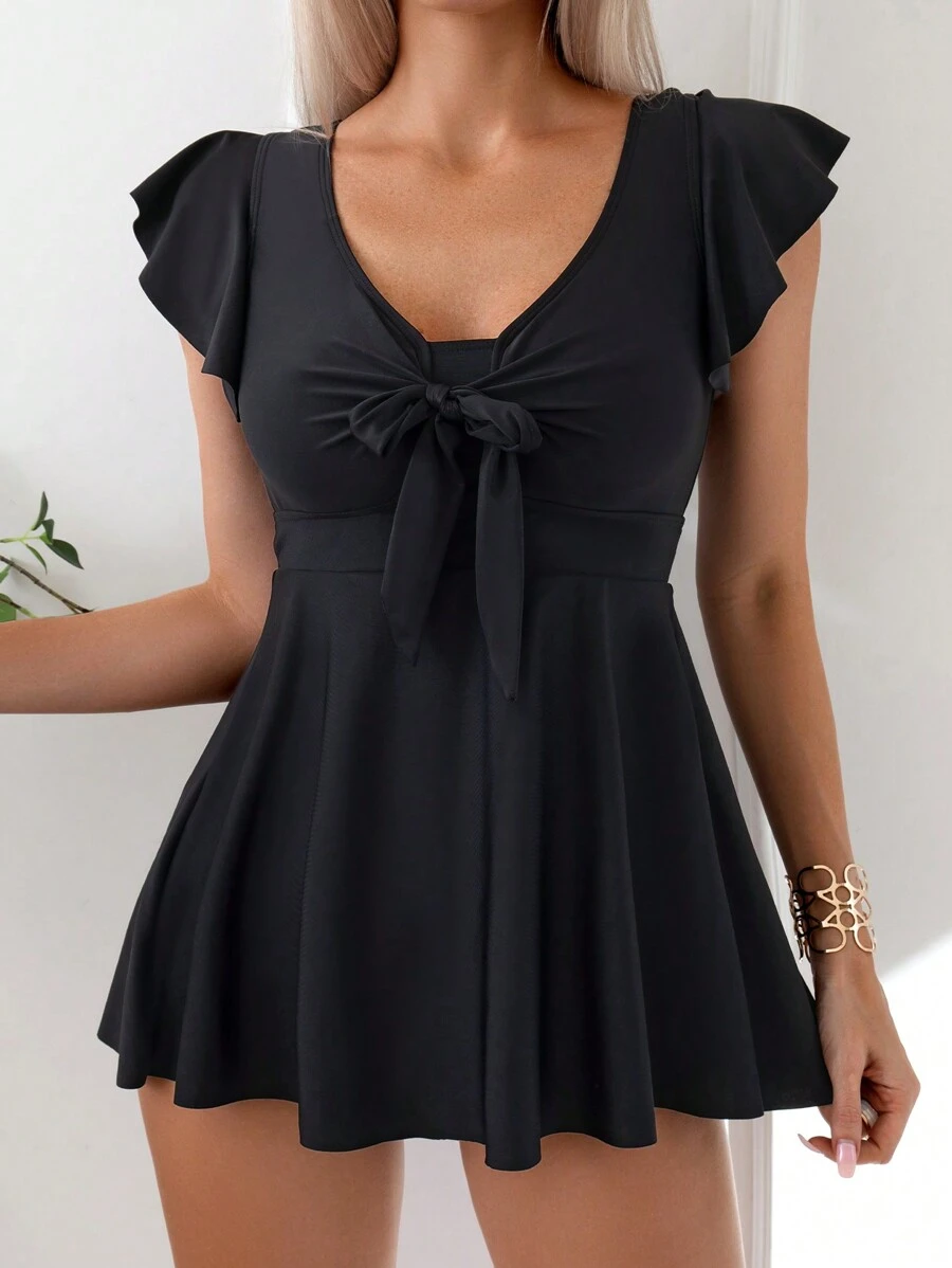 SHEIN Swim Classy Women's Butterfly Sleeve Mini Dress Tankini Swimsuit