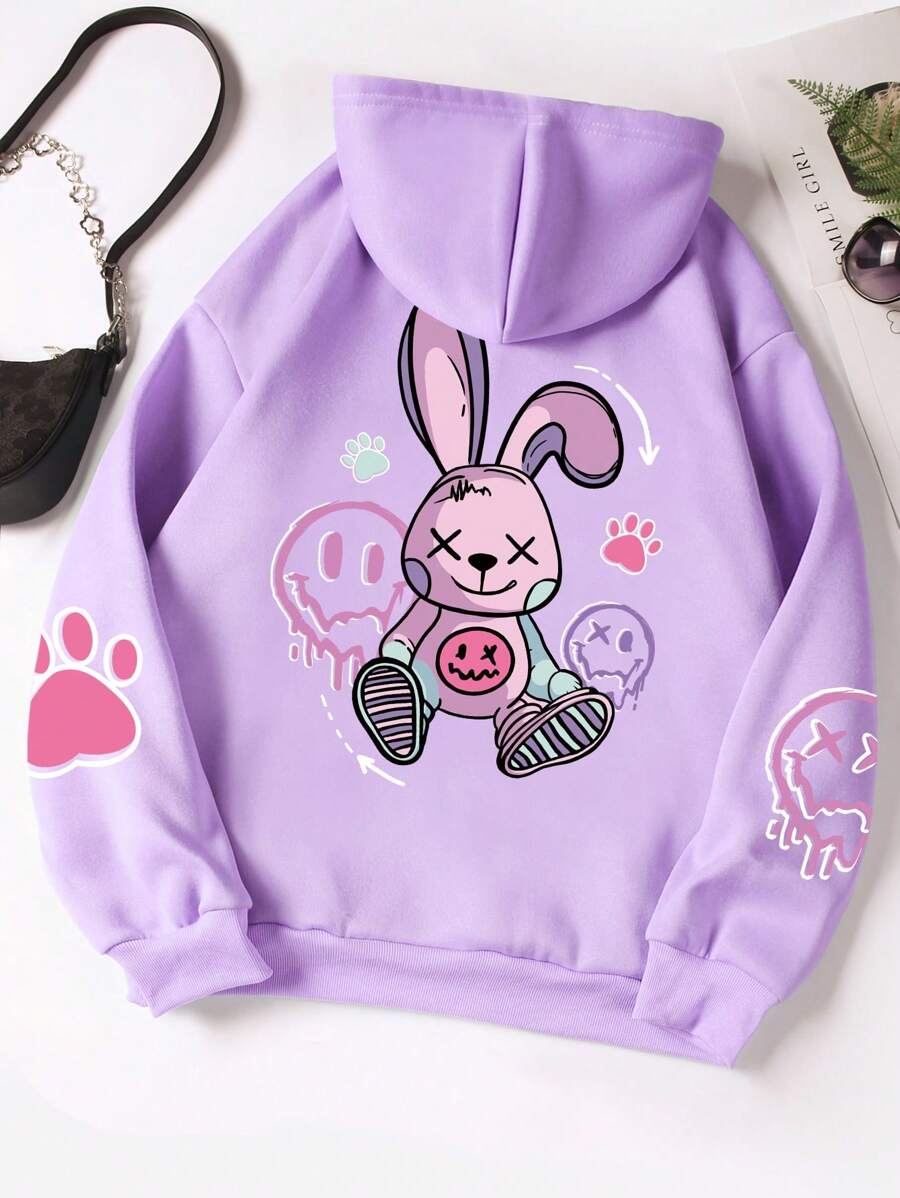 SHEIN Qutie Women's Cartoon Printed Hooded Fleece Sweatshirt With Drawstring