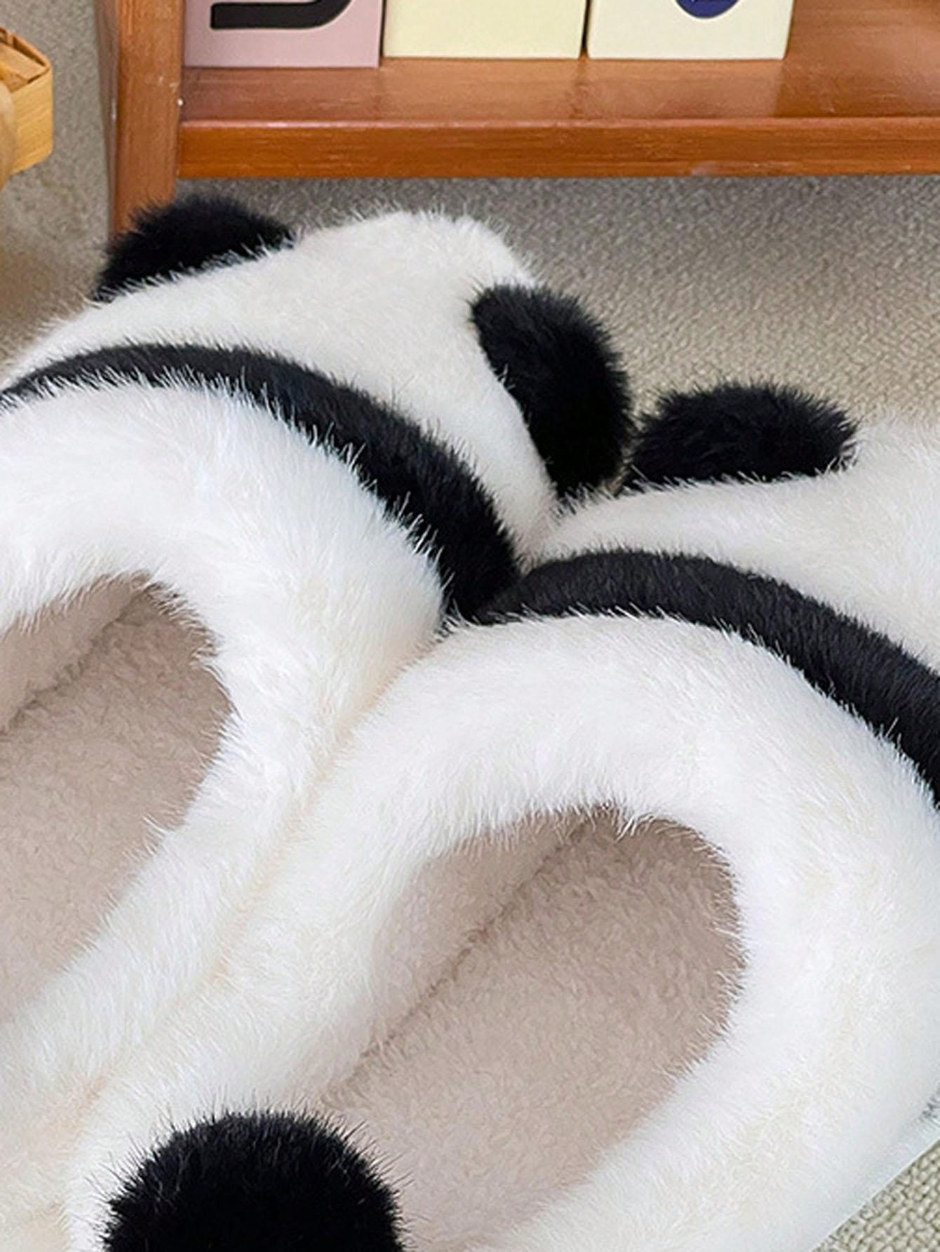 Women's Comfortable Thick-soled Plush Bedroom Slippers, Casual Animal Panda Pattern Indoor House Shoes
