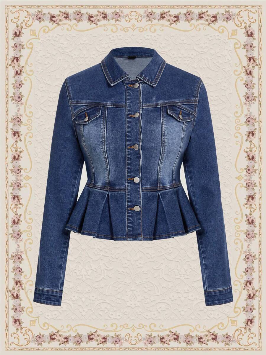 SHEIN DECDS Women's Denim Jacket With Ruffle Hem