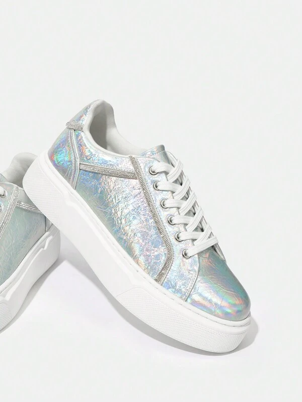 SHEIN SXY Women's Fashionable Shiny Lace-up Outdoor Sports Casual Sneakers