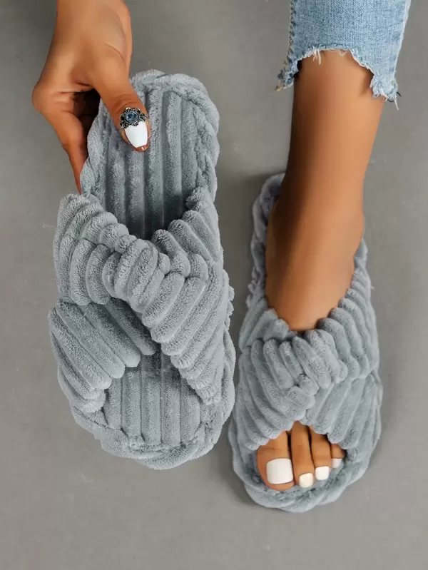 Women's Fashionable Solid Color Bedroom Slipper With Cross-over Strap, Beige