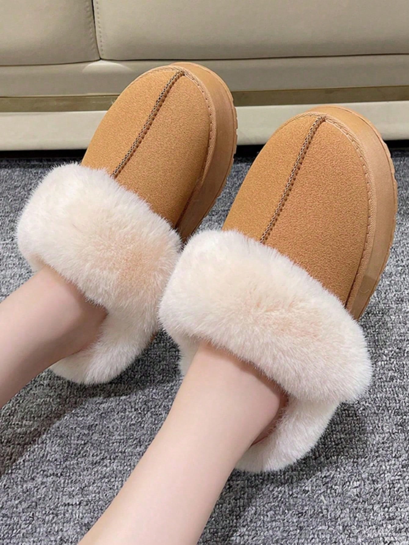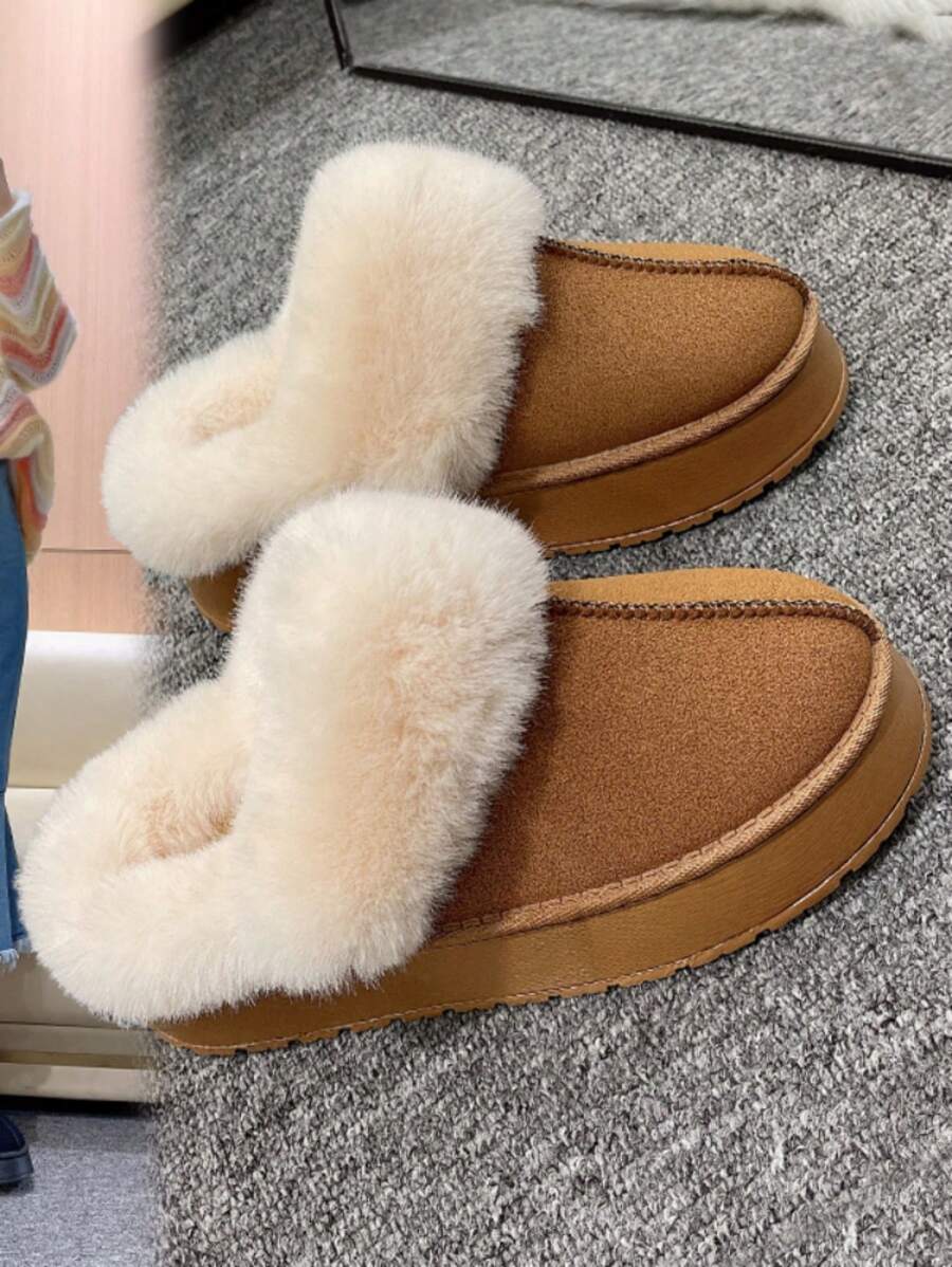 Women's Flat Warm Slippers, Autumn And Winter Snow Boots, Thick-soled Rounded Head Fluff Slipper, Casual Trendy, Thick-soled Loafers, Thick Lining For Warmth