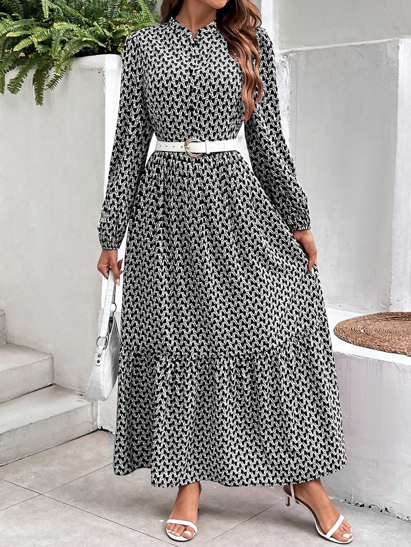 SHEIN LUNE Women's Geometric Printed Ruffle Hem Dress
