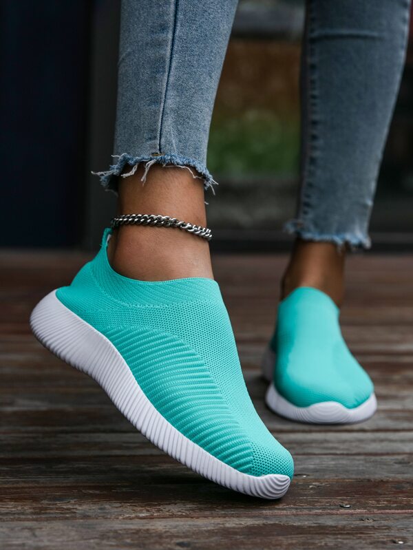 Women's Green Road Running Shoes With Neon Blue Shoelaces