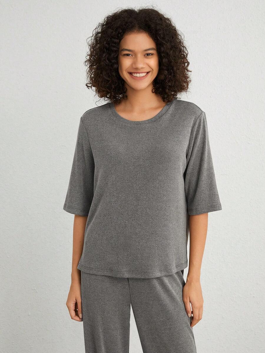 SHEIN Leisure Women's Half Sleeve Solid Color Home Wear Top