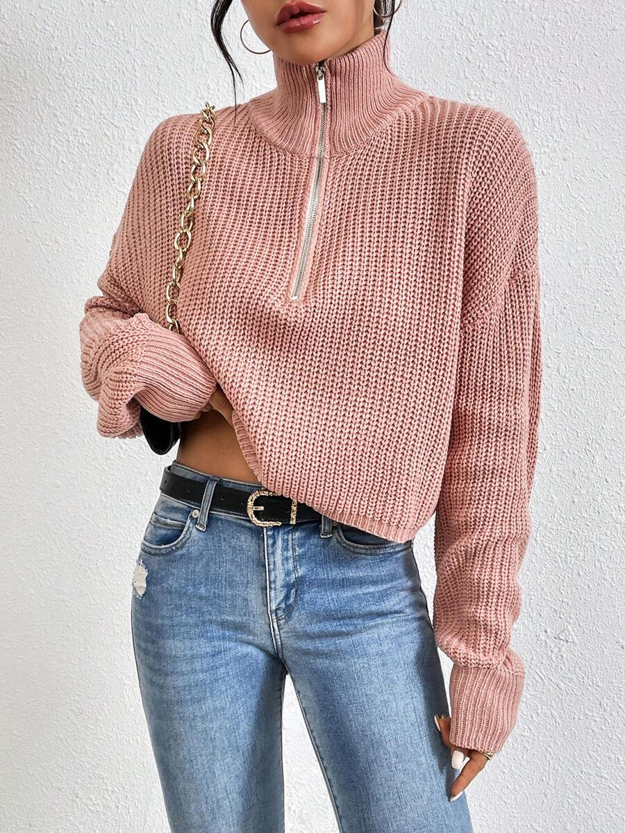 SHEIN Essnce Women's Half-zip Drop Shoulder Sweater
