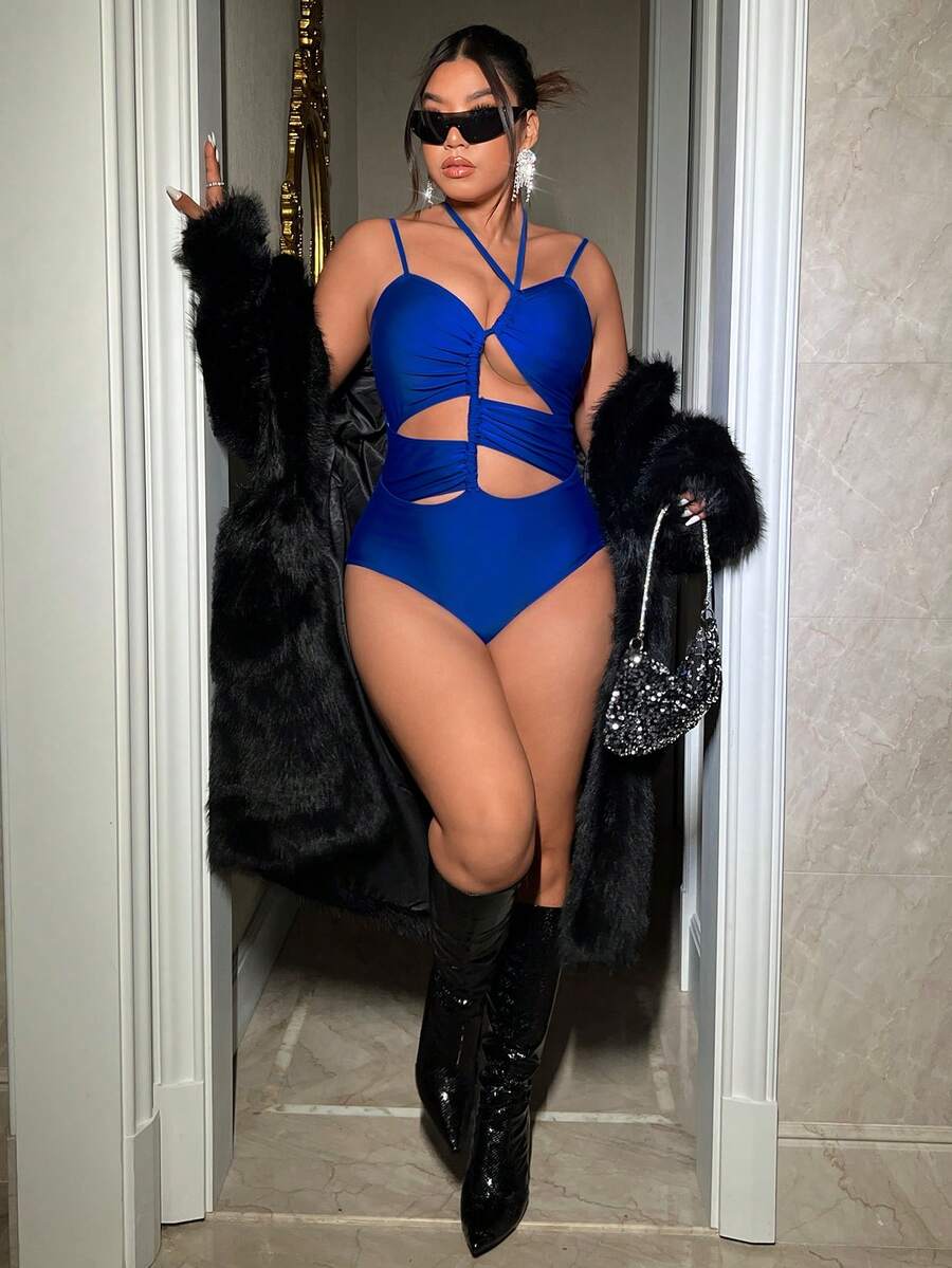 SHEIN Swim SXY Women's Halterneck Plus Size One-piece Swimsuit