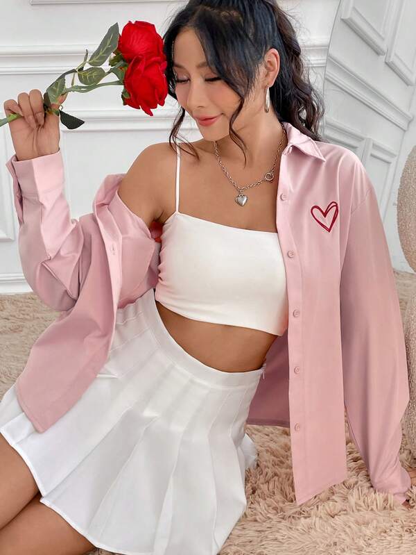 SHEIN Qutie Women's Heart Print Long Sleeve Shirt