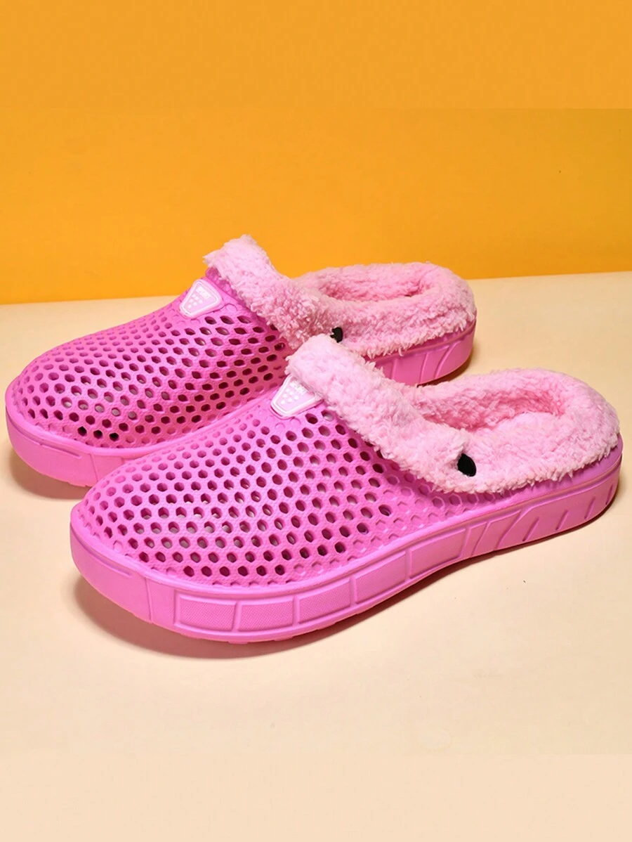 Women's Hollow-out Shoes,Women's plush solid color perforated shoes, comfortable winter slippers