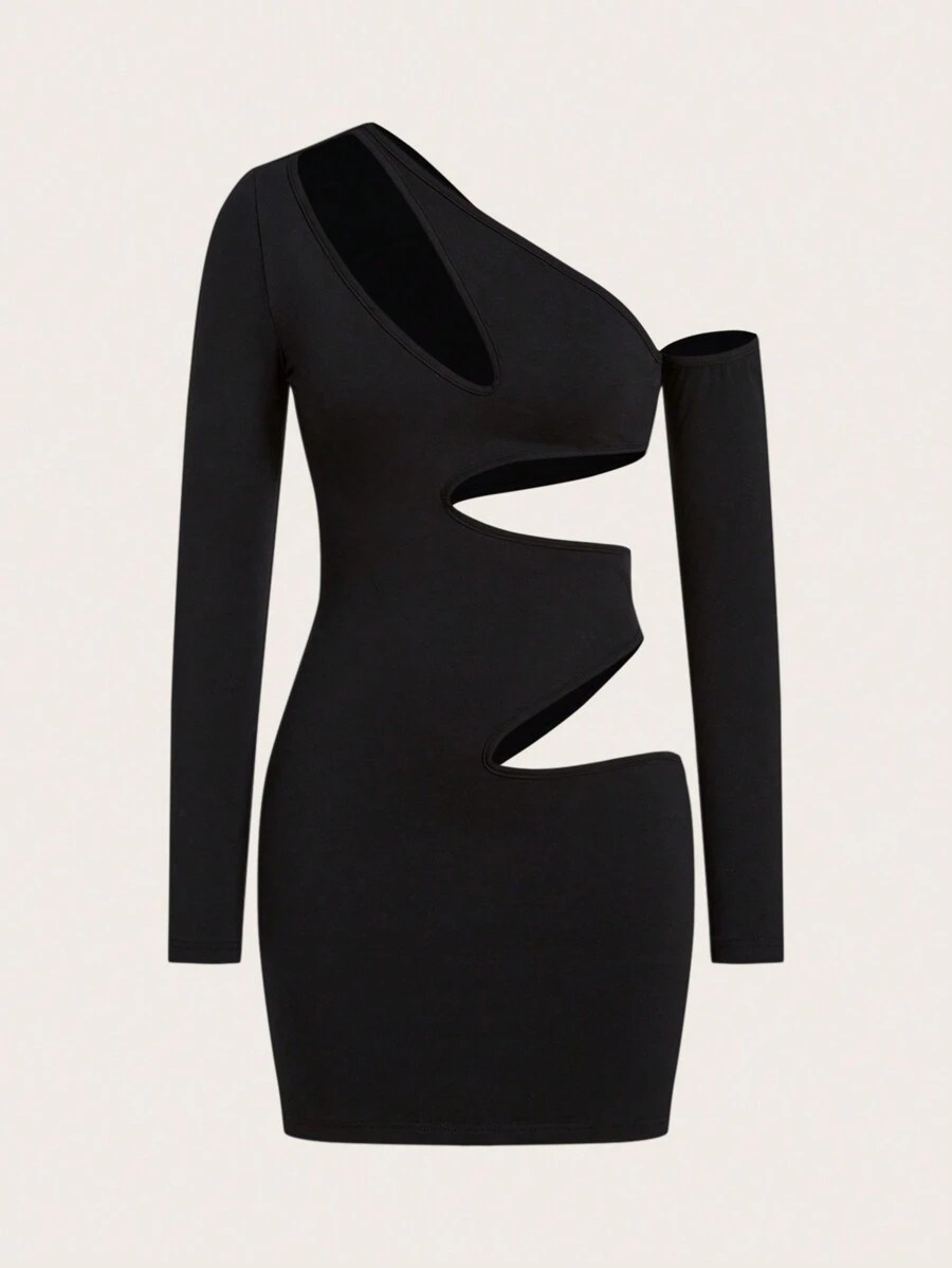 SHEIN ICON Women's Irregular Collar Hollow Out Long Sleeve Dress