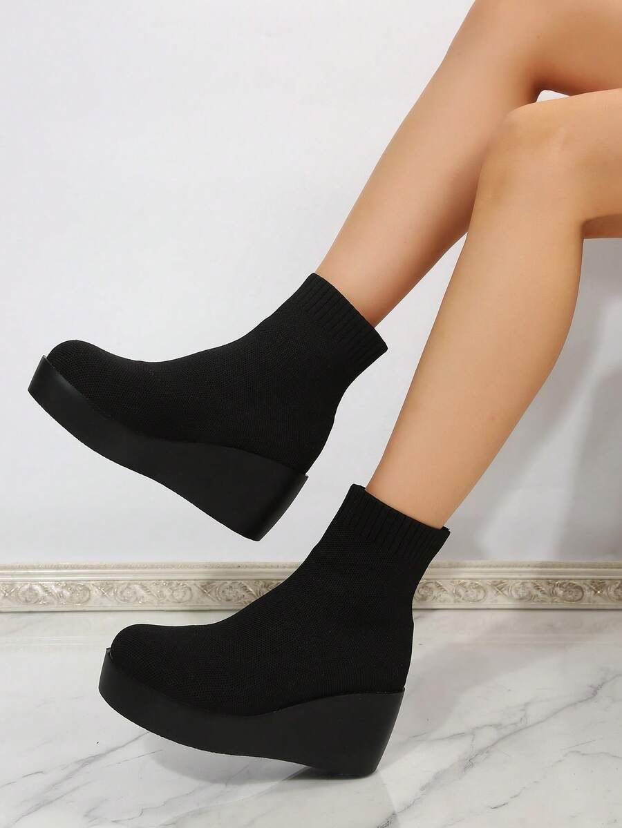 Women's Knit Platform Wedge Heel Boots For Fashionable Casual Autumn And Winter Wear