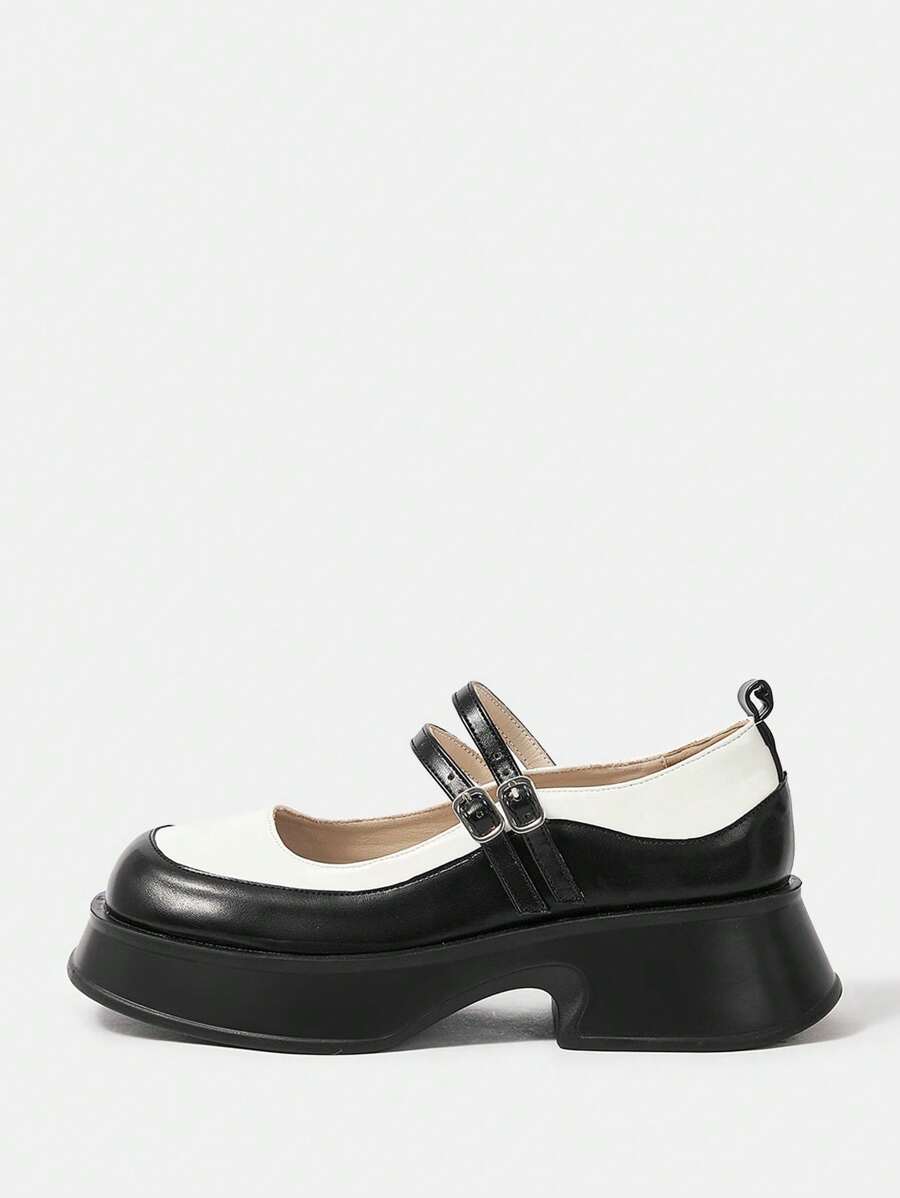 SHEIN MOD Women's Lovely Color Block Mary Jane Platform Shoes In College Style