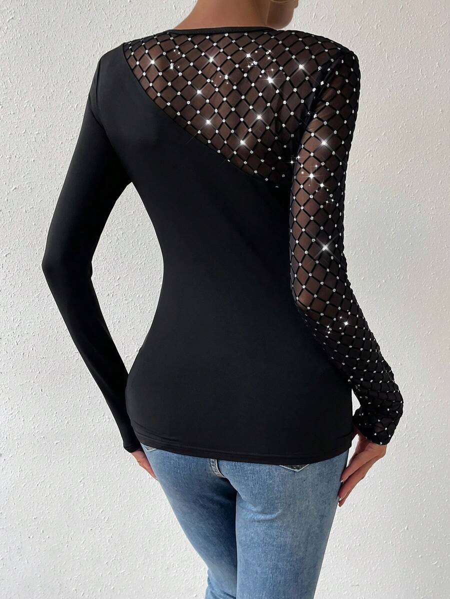 SHEIN Privé Women's Mesh Panel Round Neck Top