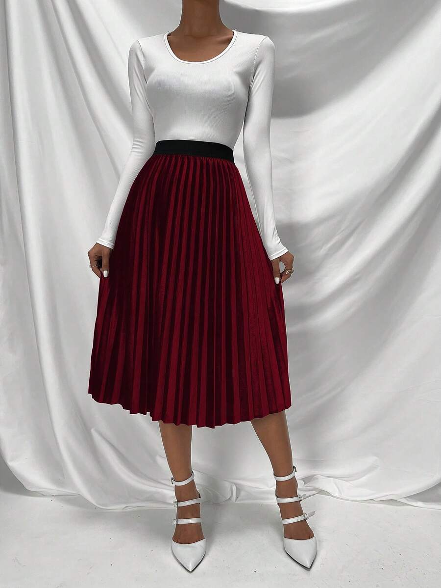 SHEIN Privé Women's Midi-length Pleated Skirt