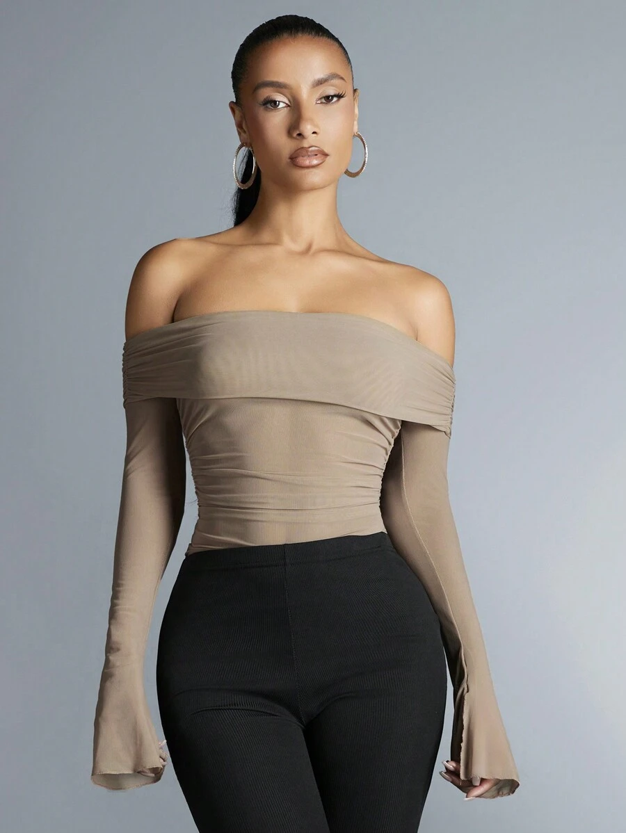 SHEIN BAE Women's Off-the-shoulder Pleated Top