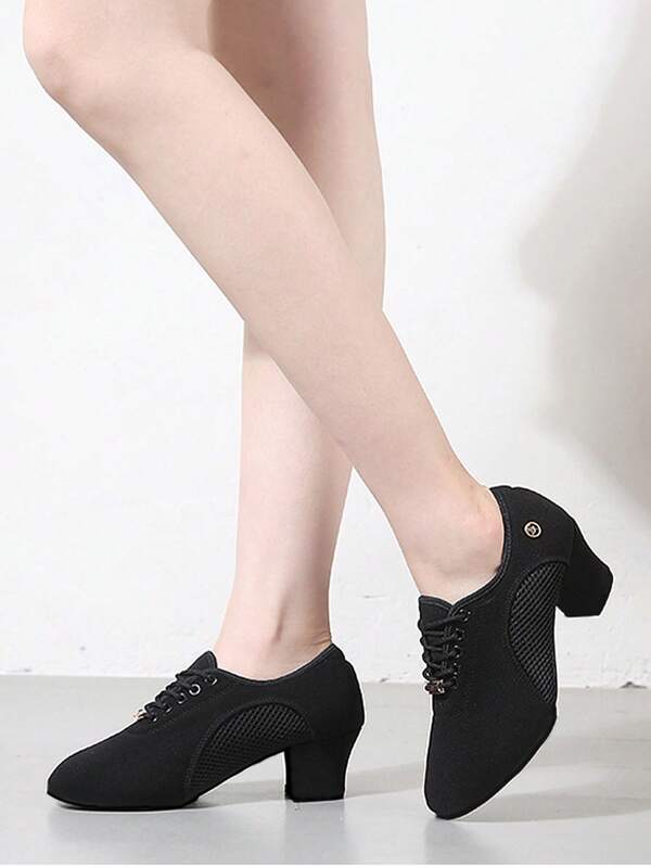 Women's Oxford Dance Shoes With Chunky Heel And Simple Front Lace-up Design For Indoor Dancing