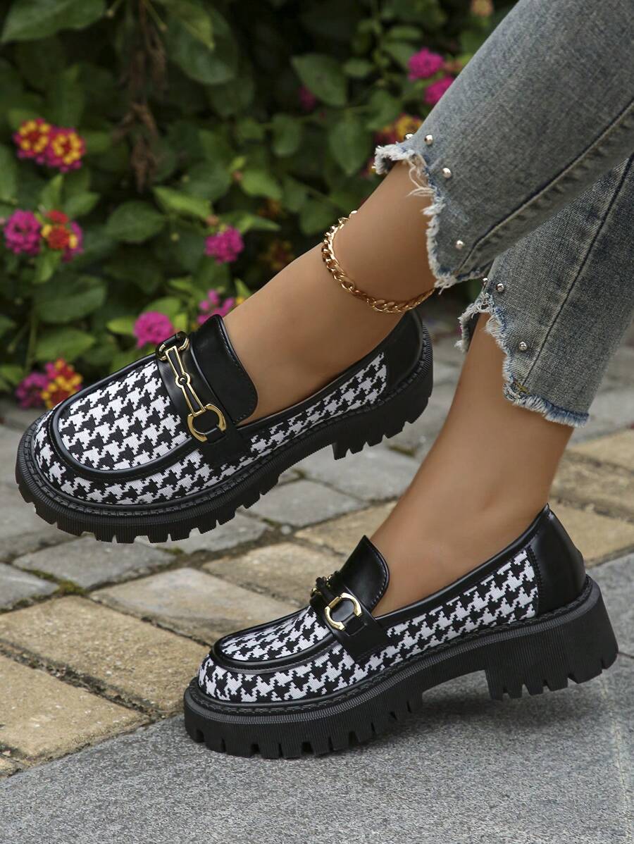 Women's Plaid Loafers With Thick Soles, Versatile Design