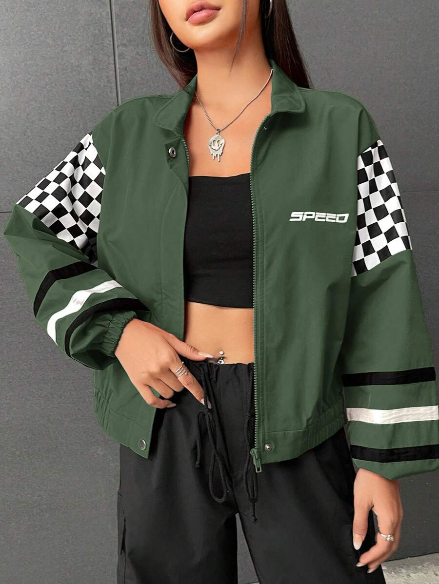 SHEIN Coolane Women's Plaid Notch Lapel Moto Jacket