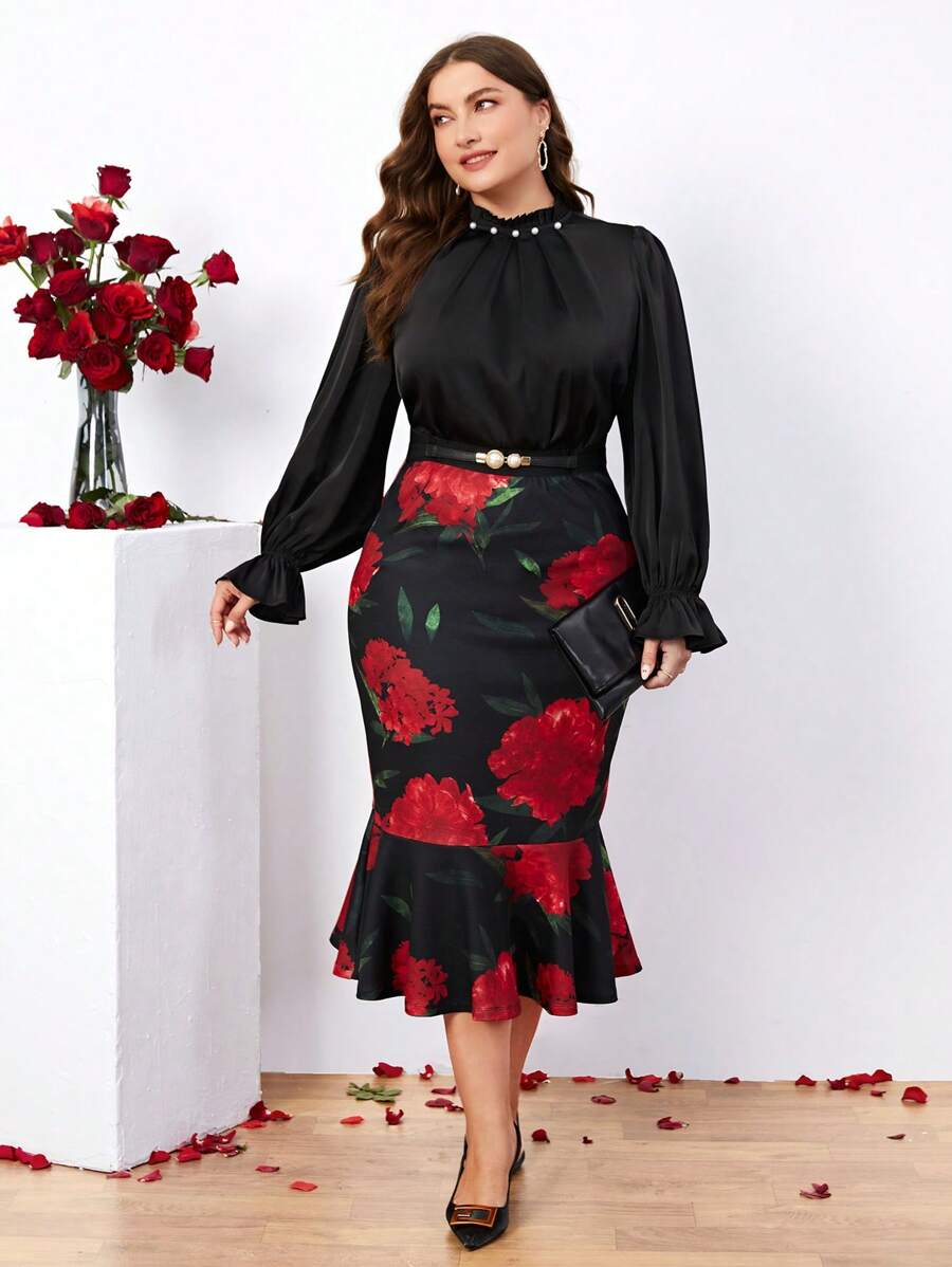 SHEIN Clasi Women's Plus Size Black Stand Collar Shirt