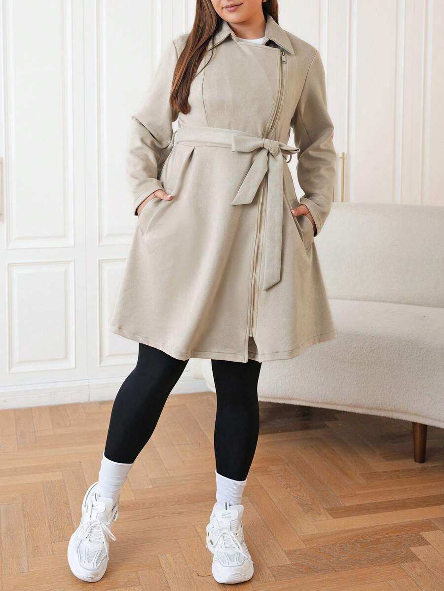 SHEIN EZwear Women's Plus Size Lapel Belted Jacket